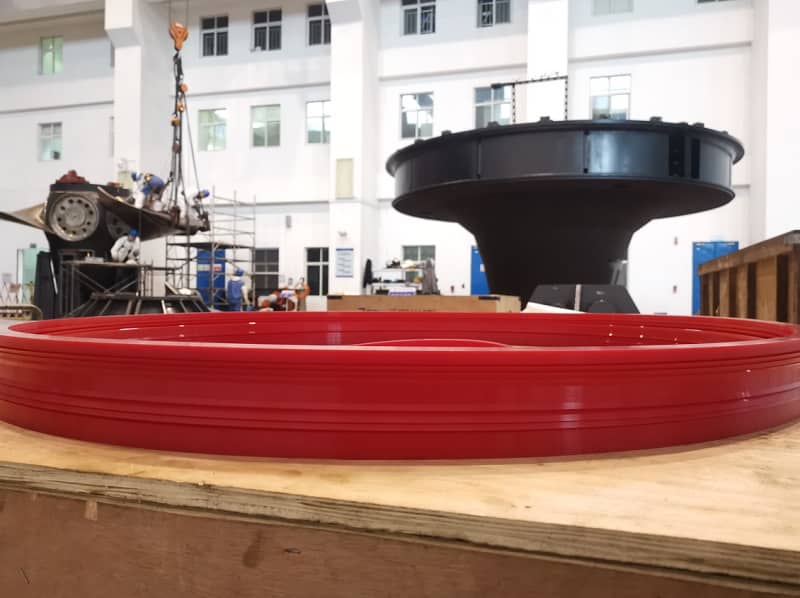 國內(nèi)早期生產(chǎn)的水輪機(jī)轉(zhuǎn)輪密封大多用λ形結(jié)構(gòu)形式。但是從大部分國內(nèi)機(jī)組的運(yùn)行情況來看密封失效現(xiàn)象普遍存在,所以說這種密封形式應(yīng)用于要求長時間穩(wěn)定運(yùn)行的水輪機(jī)組是不合理的。國為公司通過長時間的技術(shù)公關(guān),選用摩擦系數(shù)低、長時間耐介質(zhì)的材料設(shè)計(jì)出 V 組結(jié)構(gòu)形式的密封,為國內(nèi)外多家電廠解決了此類問題。